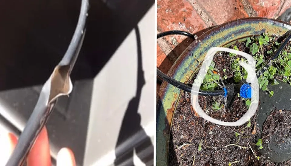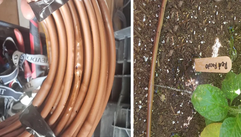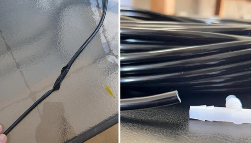One user noticed that after 2 weeks, 2 splits appeared in the line, which occurred in the sunlight. The user recommends putting the tubing underground, or in the shade to avoid this problem.