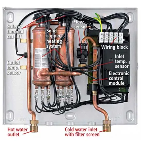 With a power draw of 13 kilowatts, it is capable of providing between 1.3 to 3.1 gallons per minute, depending on the inlet water temperature, making it suitable for regions with varying climates. Because of its small size, it can be installed in tight spaces, such as under sinks, on walls, or near the point of use. EcoSmart tankless heaters are 99% thermally efficient, heating water only when needed, which greatly reduces standby energy loss compared to traditional tank heaters. Proper installation is essential for achieving optimal performance, and it must follow local plumbing and electrical regulations, as well as following the manufacturer's setup instructions. Overall, Its compact design, energy efficiency, and precise temperature control make it an effective choice for water-heating applications.