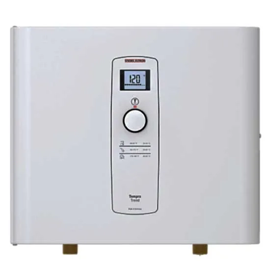The Stiebel Eltron Tempra 20 Trend tankless water heater provides you with continuous hot water. This product boasts a compact and sleek design that conserves space, and it eliminates the need for venting. This whole-house electric tankless water heater is eco-friendly, does not waste energy, and provides endless hot water with auto-modulation. The product operates in silent mode, and the temperature display is readable.
