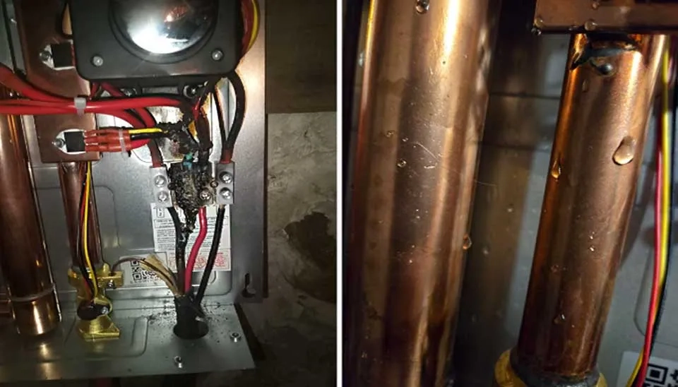 A customer reported that their water heater failed after three years because of a leak from the flow sensor, which damaged the control circuitry.