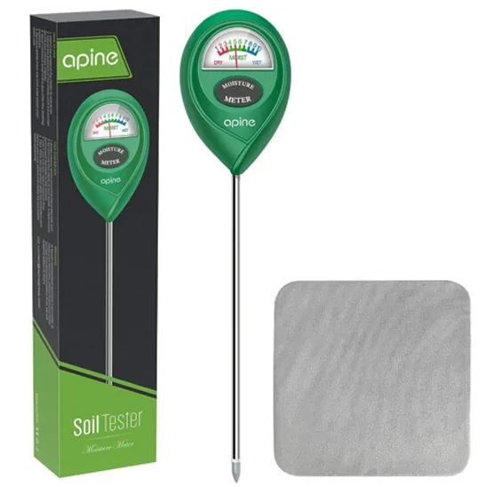 Apine Plant Water Monitor is a simple and user-friendly tool for measuring soil moisture that even children and the elderly can use. You just need to insert the high-quality stainless steel probe into the soil about two to four inches, wait a few seconds, and you can get the soil moisture. It comes with a wiping cloth that you should use to clean the probe after each use. This product gives you accurate readings and prevents plants from drying out or watering too much. The Apine soil moisture monitor requires no batteries and is used for a wide range of plants and flowers. This plant moisture meter is designed with a single needle, which has little damage to the plant roots and will not be stained with too much mud after testing. This moisture meter is not suitable for fluffy soil and cannot be used to test water or other liquids.