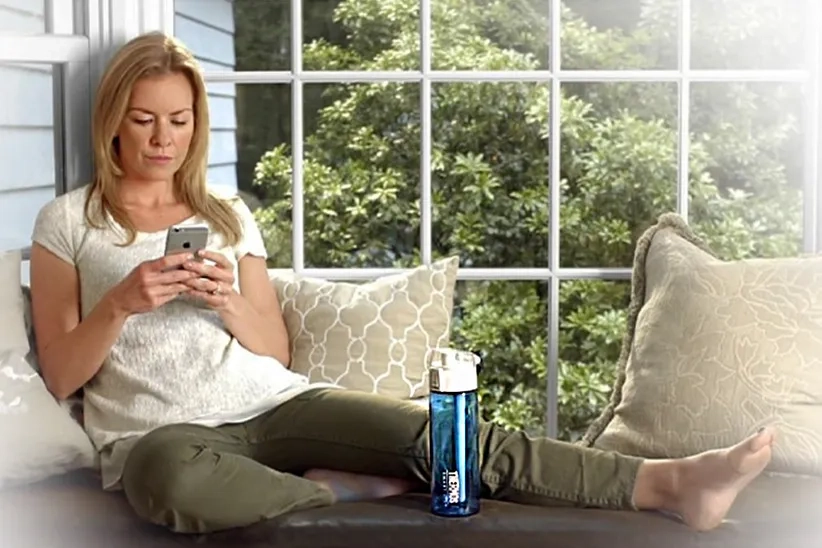 The ICEWATER 3-in-1 B2 smart water bottle glows to remind you to drink water. The reminder can work automatically without using Wifi or a smartphone. It is very easy to use this well-designed bottle and is suitable for hiking, pool, camping, and other outdoor activities. This product featured with a Bluetooth speaker and dancing lights, which are water-resistant, rechargeable, and the speaker is very loud and clear. It is made from 100% BPA-free non-toxic material and is made in the USA.