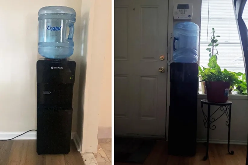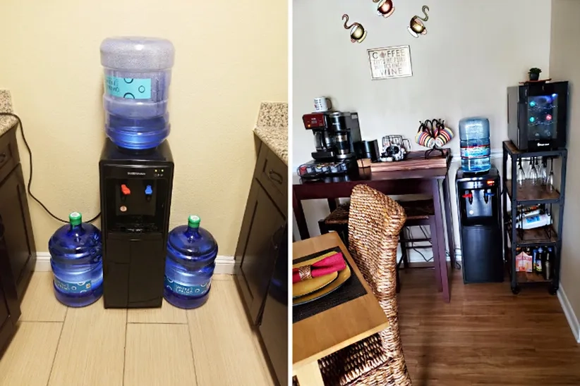 A customer has described the product as having an exceptional design since the gallon bottle is hidden at the bottom of the cabinet.