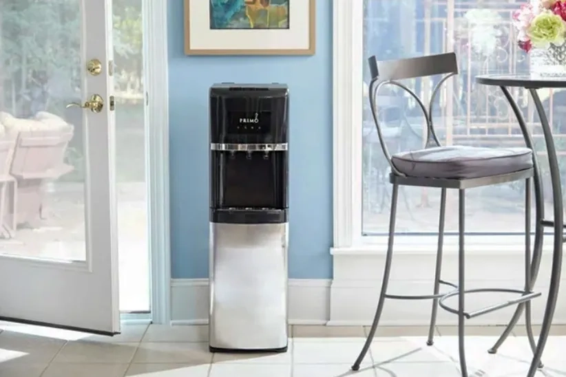 The Primo hot and cold dispenser is perfect for getting cold water in the summer and hot water in the winter. It has switches to turn off the heating and cooling, which helps to save energy. Also, the hot water includes a child-resistant safety feature. It is very well-made and durable. The stainless steel drip tray is dishwasher safe for easy cleaning. Bottles can be concealed inside the cabinet for a clean look. Get a handy and healthy way to drink water with this water dispenser.