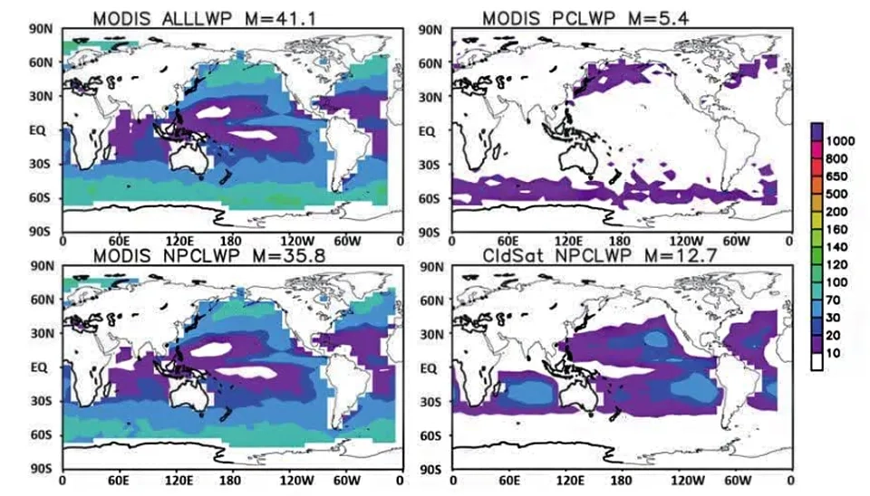 This figure indicates that the precipitating cloud contribution is predicted to be around 10% of the cloud liquid water path in all situations, and retrieval is used over the ocean (Li et al., 2018).