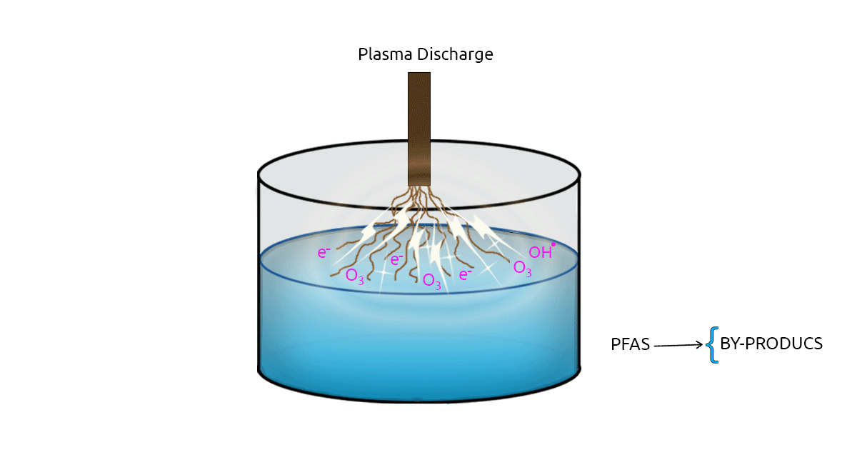 Many Advanced Oxidation Processes (AOPs) are studied in water treatment for removing contaminants of emerging concern. Plasma technology, as an advanced oxidation process, has drawn the attention of many researchers as a PFAS removal method. Plasma is an electrically charged gas. In plasma-based methods, electrical discharge between two electrodes results in the formation of highly reactive radicals, ozone, and free electrons. There are two types of Plasma-based methods: Thermal plasma and Non-Thermal Plasma (NTP). Non-thermal plasma is favored in water treatment due to its lower energy consumption (Palma et al., 2021; Nzeribe et al., 2019). The effectiveness of NTP in removing PFOA from distilled water was evaluated in a study. In this study, NTP treatment was able to remove 90% of the PFOA concentration in 60 minutes (Khan et al., 2020).
