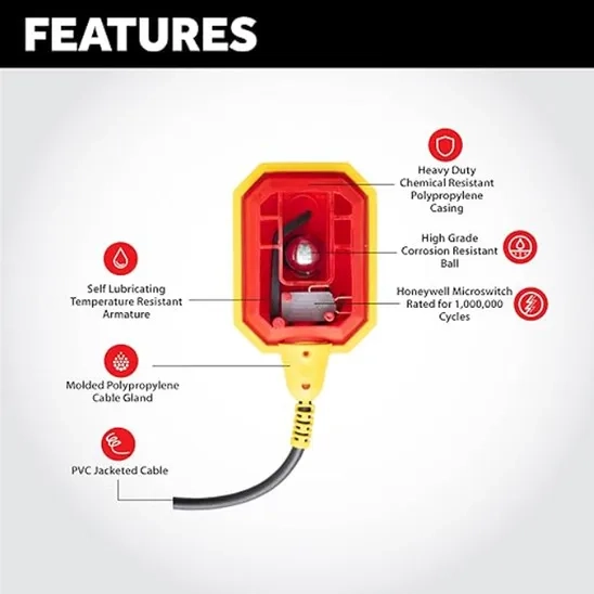 Product Name | WaterBoss Sump Pump Float Switch - Universal Water Level Sensor with 10-Ft Tether and Piggyback Plug for Grinder, Septic Pump, and Sewage - Honeywell Microswitch Rated for 1M Cycles, IP68 Waterproof |