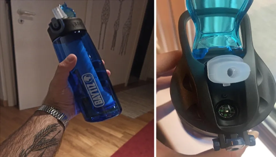 A user commented that the compass is attached to the bottle, which is very helpful in finding directions.