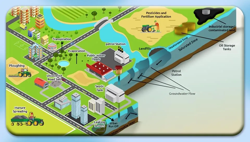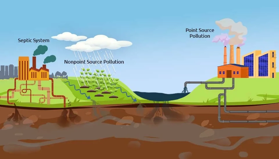 Groundwater contamination sources can not only be categorized by their potential source of contaminants but are also divided into two categories according to the release sources of groundwater contamination. The two types of release sources of groundwater contamination are 1) point sources and 2) non-point sources.