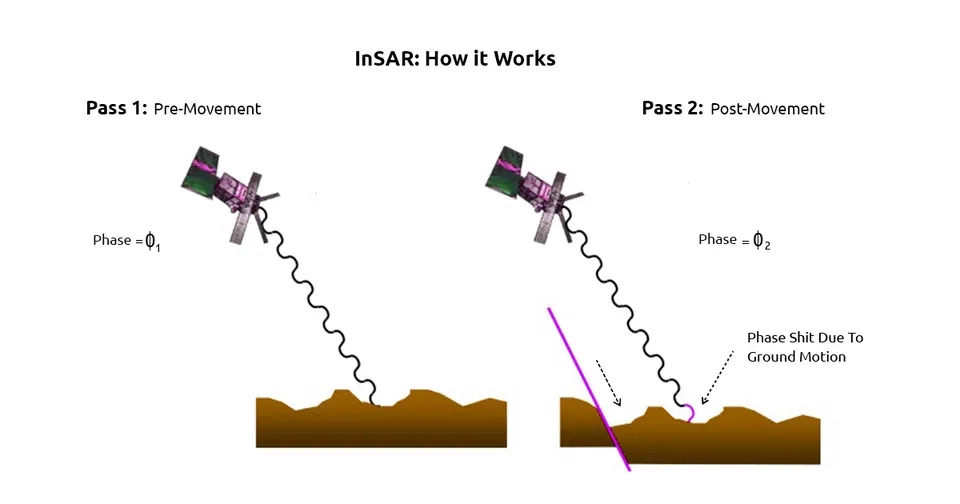 One of the most important applications of InSAR (Interferometric synthetic aperture radar) data is its ability to retrieve information about groundwater storage indirectly from land deformation. Landform changes are detected through space-based radar sensors, such as ERS, RADARSAT, ENVISAT, ALOS, and Sentinel-1, in which the conventional InSAR, the persistent scatterer interferometry, and the coherence change detection techniques are used. InSAR studies show that the observed subsidence is caused by groundwater depletion, while land uplift is associated with aquifer recharge and increased groundwater storage (Castellazzi and Schmid, 2021).