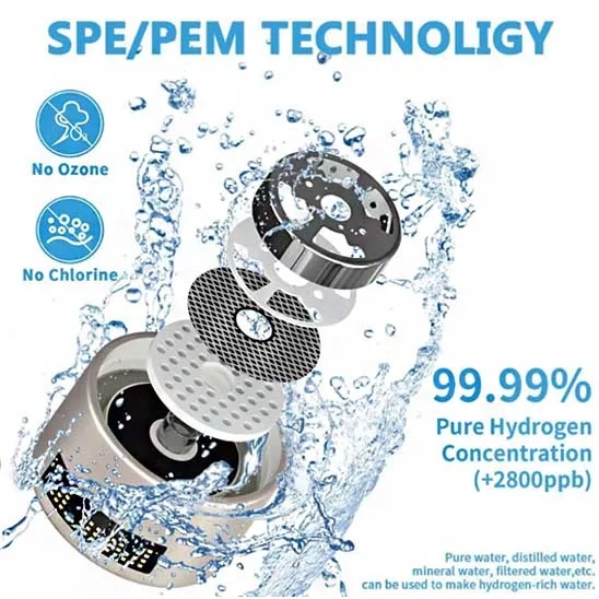 PEM electrolysis is an advanced process for the separation of hydrogen molecules by a solid polymer membrane, where hydrogen ions are allowed to pass while stopping the gases at the anode and cathode from mixing. This process produces high-quality hydrogen gas. PEM has a compact design, which allows it to be implemented in small spaces, like bottles, with high portability. Moreover, it can work with a variety of voltages and its response time is short. Solid polymer material is used in PEM electrolysis to conduct protons effectively. However, PEM has limitations as well. PEM has higher costs than other electrolysis methods due to the use of materials such as platinum. Also, based on the frequency of usage, the proton-conductive polymer membrane can degrade over time. Another drawback is that the PEM is sensitive to the quality of the water, especially ions like chloride. Water treatment plants use chloride, and tap water can contain high levels of this ion. Therefore, if the water you intend to use in the hydrogen water generator is of low quality, PEM electrolysis may not be suitable. If you use the product with low-quality water, it can degrade quickly and not perform optimally.