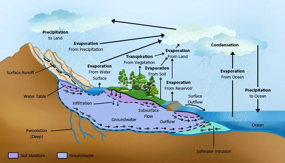 In conclusion, the hydrological cycle, its components, and processes have a decisive role in the existence and access to water resources, and with their detailed study, comprehensive planning in the field of water resources supply and management can be achieved. It should be kept in mind that human activities and climate changes can have wide-ranging effects on the hydrological cycle, and the investigation and study of these effects play a key role in ensuring water security around the world.