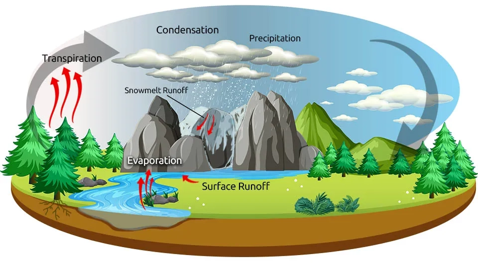 So it can be concluded that the hydrologic cycle is a constant process by which water moves through the atmosphere, the oceans, and the land, forming a continuous cycle essential to maintaining life on Earth. The main elements of the hydrologic cycle are evapotranspiration, condensation, precipitation, infiltration, and runoff. By understanding these essential elements, we can have a better understanding of the cycle and how it works to maintain the water balance on Earth.