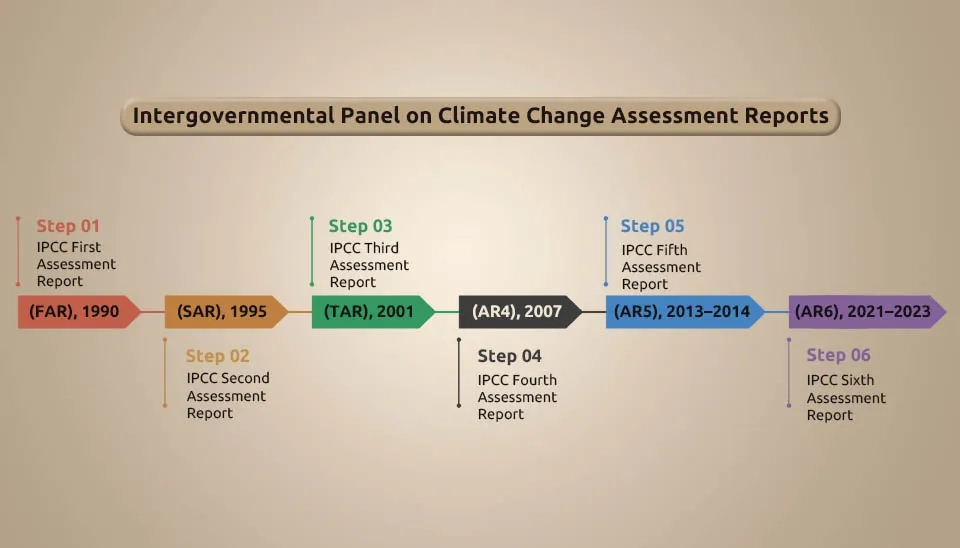The Intergovernmental Panel on Climate Change (IPCC) is a scientific and authoritative organization established in 1988 by the United Nations Environment Program (UNEP) and the World Meteorological Organization (WMO) to evaluate scientific, technical, and socio-economic information. The IPCC assessment reports contain valuable information about climate change, its potential effects, and causes, which are considered a valid reference and basis for international climate negotiations and political decisions. In addition to climate change, the IPCC publishes various reports on specific issues and methodology reports, which include practical and effective guidelines for presenting the status of greenhouse gases. The IPCC's role in evaluating information is not limited to the publication of evaluation reports; it also organizes expert meetings, workshops, main authors' meetings, and various communication events where the latest findings, results, and methodologies are shared. The IPCC has produced and published several Assessment Reports (ARs) in the last 3 decades, from TAR in 1990 to AR6 in 2021–2022, which are described in detail below (IPCC Reports). The names of the IPCC assessment reports are FAR, SAR, TAR, AR4, AR5, and AR6 in the order of publication.