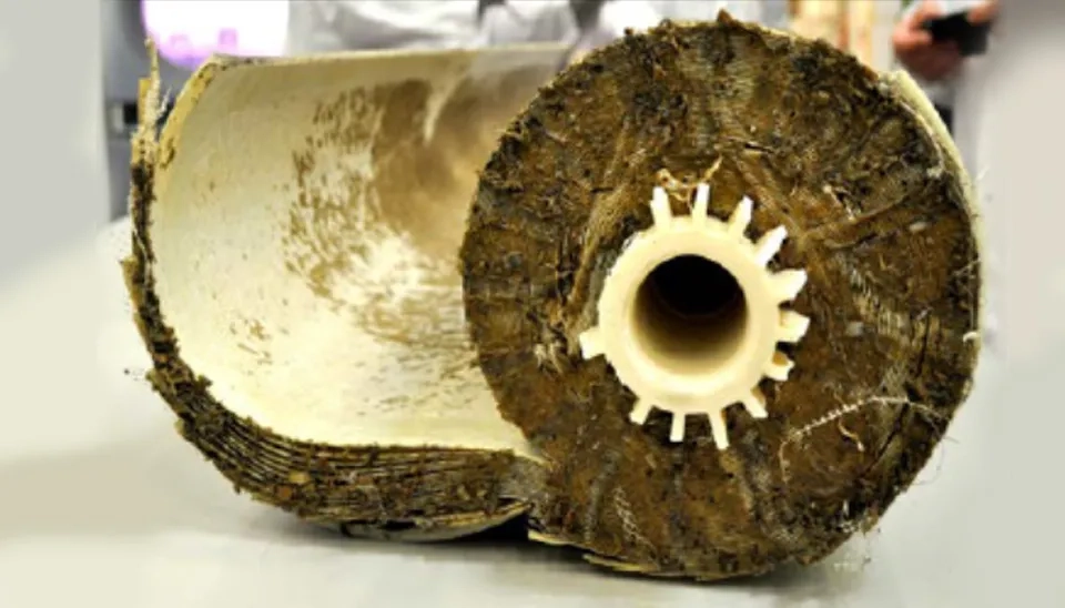 Biofouling is widely regarded as one of the most formidable fouling types and is more complex than other membrane fouling types (Hibbs et al., 2016). It is difficult to eliminate membrane biofouling by pretreatment methods, unlike other types of membrane fouling. Biofouling is caused by microorganisms, which can easily grow and multiply. Therefore, one hundred percent of the bacteria must be removed by pretreatment. Otherwise, the remaining organisms can grow on the membrane surface and lead to membrane fouling.Fig. 3 Membrane biofouling