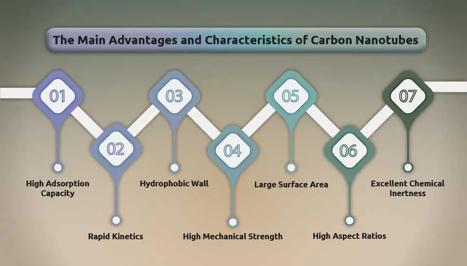 Carbon NanoTubes (CNTs) are allotropes of carbon with a cylindrical nanostructure that is used to remove highly degradable contaminants, including antibiotics and pharmaceuticals (Ji et al., 2009; Das et al., 2014; Qu et al., 2013). Due to their high adsorption capacity, rapid kinetics, high mechanical strength, excellent chemical inertness, large surface area, high aspect ratios, and hydrophobic wall, carbon nanotubes can be used to trace metals and organic pollutants and can be used in the construction of composite membranes for water treatment applications (Das et al., 2014; Lee and Park, 2016). Depending on their manufacturing process, CNTs can be classified as single-walled nanotubes or multi-walled nanotubes. While carbon nanotubes are more expensive than conventional activated carbon, their sorption and desorption are more efficient. In addition to its high production costs (De Volder et al., 2013), due to the presence of metal catalysts, raw CNTs may contain some degree of toxicity, while chemically functionalized carbon nanotubes have not shown toxicity yet (Chen and Wang, 2006).