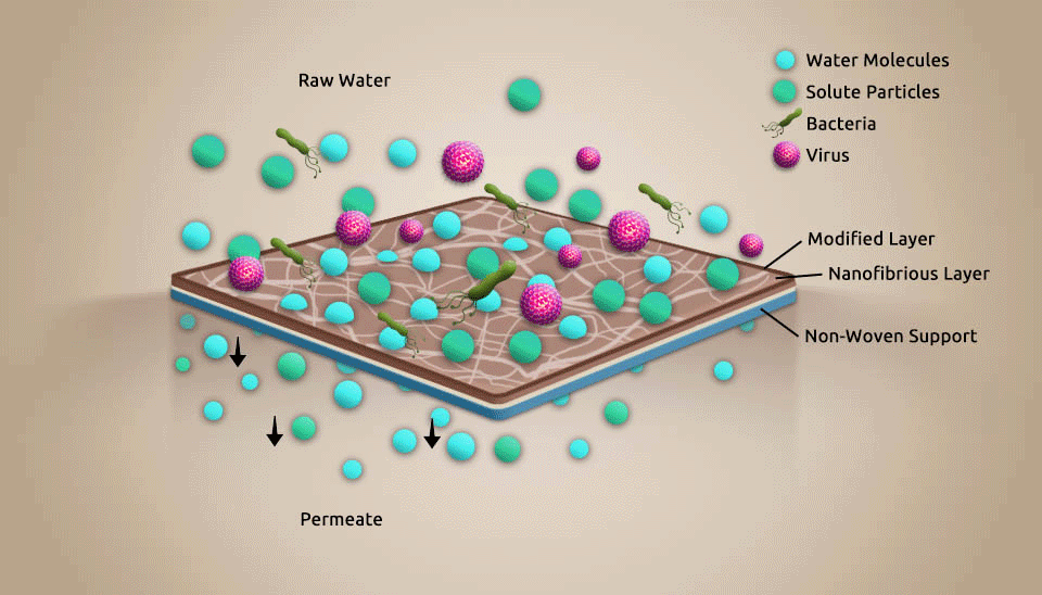 Nanofiber membranes one type of many Types of Membrane Fouling, can clean micro-sized particles from aqueous solutions and are highly resistant to fouling. In addition, organic functional groups, together with nanofibers, can contribute to the electrospinning process to synthesize affinity membranes for desalination and water treatment (Cloete et al. 2010). Compared to microfibers, nanofibers have a much higher surface-to-volume ratio, resulting in a better and more efficient separation and adsorption of microbes, bacteria, and heavy metals from the water. Nanofiber membranes’ eco-friendly nature, high-temperature resistance, high rejection rate, and longer life span make their usage more favorable (Prasad and Karchiyappan, 2019). It is proposed to use these membranes in the water pretreatment step for the removal of contaminants before ultrafiltration technology and reverse osmosis processes (Ramakrishna et al., 2006).