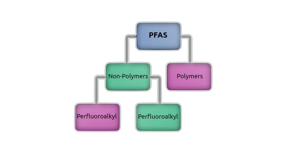 The Environmental Protection Agency (EPA) identified 14735 compounds as PFAS in 2022 (CompTox, 2022). They are generally divided into polymers (a large molecule that consists of a chain of smaller molecules) and non-polymer substances. Non-polymers are either perfluoroalkyl (completely fluorinated carbon chain) or polyfluoroalkyl (partially fluorinated carbon chain) (ITRC, 2022). The most widely known PFAS chemicals are Perfluorooctonic Acid (PFOA) and Perfluorooctane Sulfonate (PFOS). Both are subsets of the perfluoroalkyl group and they are made of a chain with eight carbons (Fragki et al., 2020; EPA, 2017).
