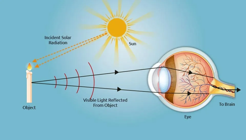 In the general sense, the human visual system is an example of a remote sensing system. As the objects/events being observed are located far away from the eyes, the information needs a carrier to travel from the object to the eyes. The visible light, a part of the electromagnetic spectrum, is the information carrier in this case. The objects are reflecting the ambient light and scattering it over them. The eyes intercept part of the scattered light, creating an image on the retina when it passes through the eye's optical system. The signals generated at the retina are carried via the nerve fibers to the brain, the central processing unit of the visual system. With the assistance of prior experiences, these signals are being decoded and interpreted in the brain. An example of "Passive Remote Sensing" is the visual system, which relies on an energy source from outside to operate. This system won't work in darkness (Ali, 2010).