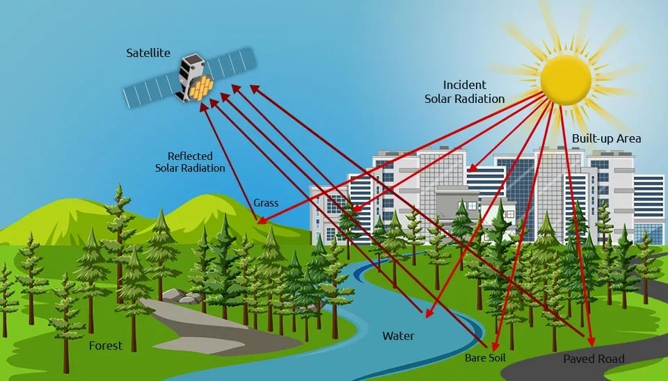 Optical remote sensing is mainly passive sensors that use the sun's energy. The USGS Landsat, NASA’s MODIS, and the ESA’s Sentinel-2 are some optical remote sensors that have been used by several researchers including water researchers for monitoring and managing water resources (Herndon et al., 2023). The wavelength region is typically extended from the Visible and Near Infrared (VNIR) to the ShortWave InfraRed (SWIR). The visible and infrared light is reflected in different ways by different materials such as water, soil, vegetation, buildings, and roads. When seen in the sun, they have different colors and brightness.