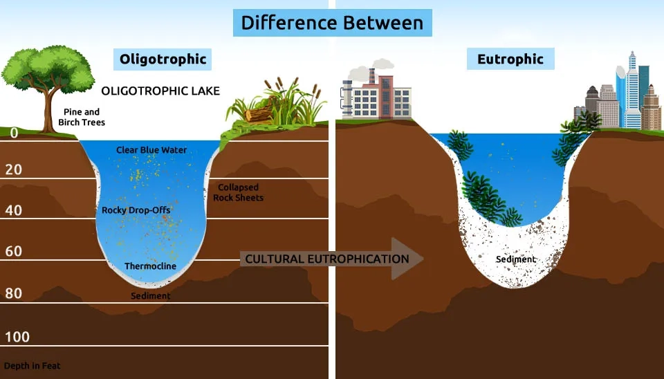 The process of reducing or exhausting nutrients in aquatic ecosystems is called oligotrophication. In recent decades, the transport of suspended sediments has been greatly reduced by human factors such as the construction of dams and reservoirs. The reduction of sediment transport in some rivers, such as the Nile, is such that all sediments are trapped by dams and reservoirs. A 15–40% decrease in the accumulation rate of fine sediments and an 8-fold increase in the accumulation rate of coarse sediments will have many consequences. An increase in calcium carbonate, a decrease in total organic carbon, and a change in the benthic foraminiferal assemblage are among the effects of sediment trapping in dams and reservoirs, which lead to a decrease in nutrient fluxes and the occurrence of oligotrophication. Benthic oligotrophication processes in downstream rivers have had significant consequences in ecosystems around the world, such as the Eastern Mediterranean ecosystem. The consequences of oligotrophication affect the ecological function of rivers, flood plains, deltas, and coastal waters. (Herut et al., 2023).