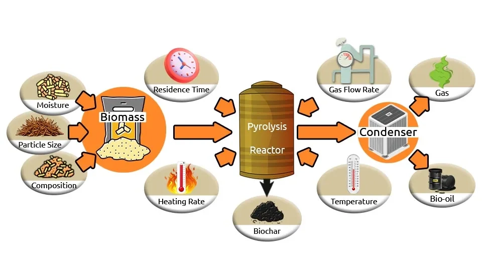 In recent years the process of pyrolysis has become more and more known, thanks to its environmentally friendly nature and ability to turn biomass into three main product types: Bio-oil, Biomass Energy or Syngas. It is a thermal procedure that takes place without oxygen. All products of pyrolysis are effective and useful in a wide range of applications. Biochar can be used to increase biogas generation when it is added as fuel for anaerobic digestion (Qiu et al., 2019). However, ammonia nitrogen, sulfide, limonene, volatile fatty acids, long-chain fatty acids, and pH may be inhibited by anaerobic digestion. Biochar can be used to modify these inhibitors to stabilize the functioning of anaerobic digesters, thus increasing the production of biogas as a key product of this process. As this product contains the most valuable compound for plant growth, it is capable of improving soil properties (Staˇs et al., 2020). Nevertheless, the most suitable technique of sludge treatment seems to be pyrolysis; this method has some limitations in terms of heavy metals that contain substances . All residues of biodiesel, bio-oil, and syngas have been confirmed to include heavy metals following the pyrolysis process. Heavy metals transportation via different applications of pyrolysis byproducts was feasible (Larina et al., 2020). The combination of pyrolysis and acid washing has resulted in a low environmental risk for resource use (Li et al., 2023).