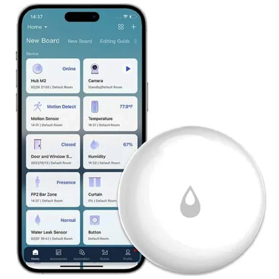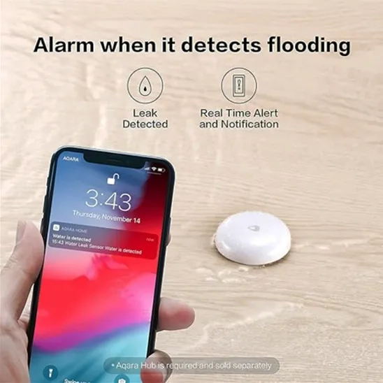 Hub-compatible water leak detectors, such as the Aqara Wireless Water Leak Detector, use a central hub for control and communication with users. These types of leak detectors are suitable for users who want a centralized smart home setup. They often have compact designs, easy installation, and even anti-UV materials for long-term performance in harsh conditions. These detectors trigger hub alarms and send alerts when they detect leakage. For example, the Aqara Wireless Water Leak Detector connects to Zigbee hubs for continuous leak detection.