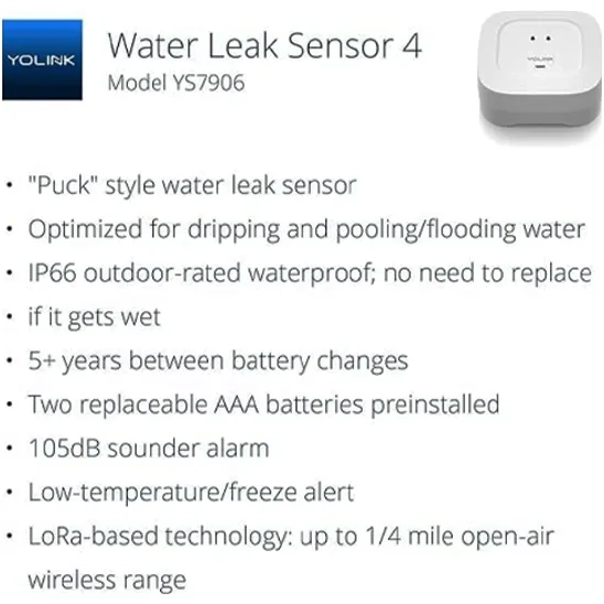YoLink Smart Home Starter Kit: Hub & Water Leak Sensor 4 with 105dB Audio Alarm 4-Pack, SMS/Text, Email & Push Notifications, Freeze Warning, LoRa Up to 1/4 Mile Open-Air Range, w/Alexa, IFTTT | $89.99 |