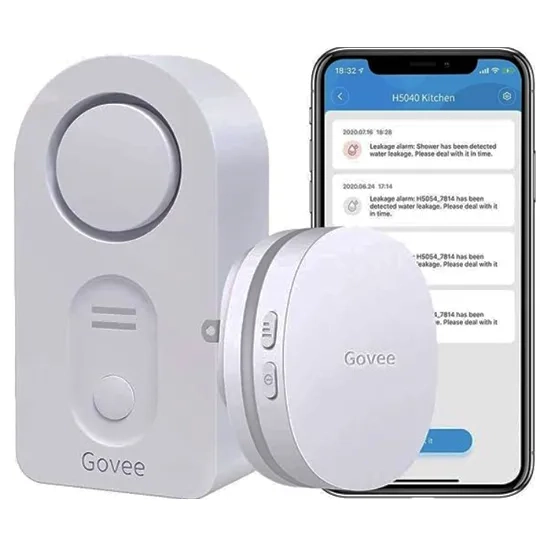 Govee WiFi Water Sensor, 100dB Adjustable Audio Alarm, Smart App Alerts, Leak and Drip Alert with Email, Detector for Home and basement (Not Support 5G WiFi) | $29.99 (1 sensor); $39.99 (2 sensor) |