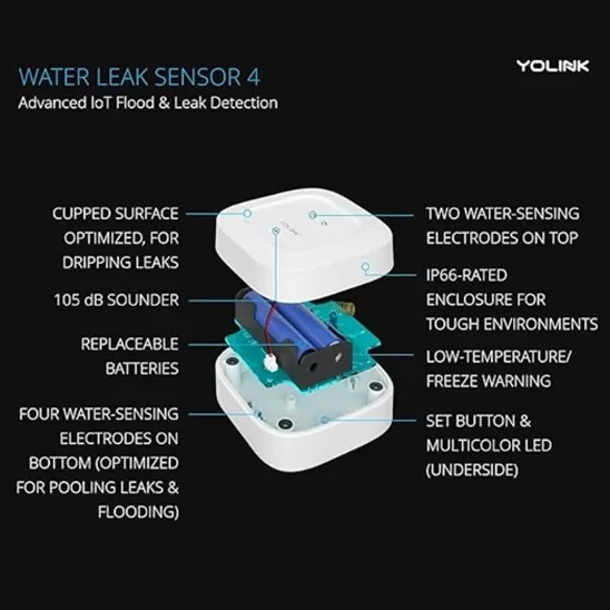 YoLink Smart Home Water Leak Sensor | 105 dB | SMS (5 per device/month), Email, Push Notifications |