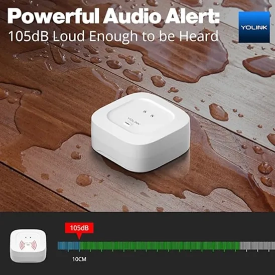 The effectiveness of the alarm and notification systems through audio alarms, visual alerts, and push notifications should be considered to ensure timely alerts of potential water damage. Devices like the YoLink Smart Home Water Leak Sensor feature a 105 dB audio alarm as a loud warning for detecting leaks. Leak detectors like the Govee WiFi Water Sensor and the Fansitc Wireless Water Leak Detector have customizable alerts that allow users to adjust the volume of their 100 dB and 120 dB alarms, respectively, and ensure that they can be heard in various environments. Also, some systems, such as the X-Sense SWS54 Smart Water Leak Detector, cover visual indicators (e.g., flashing red lights) as well as an audible alarm to alert potential leakage issues.