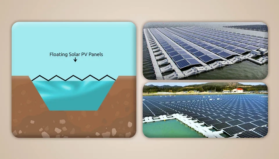 Fixed and Floating Solar Photovoltaic Panels | - Reduces evaporation by creating a cooler microclimate - Generates clean energy - Reduces aquatic weed growth - Improves photovoltaic performance by cooling the panels |
