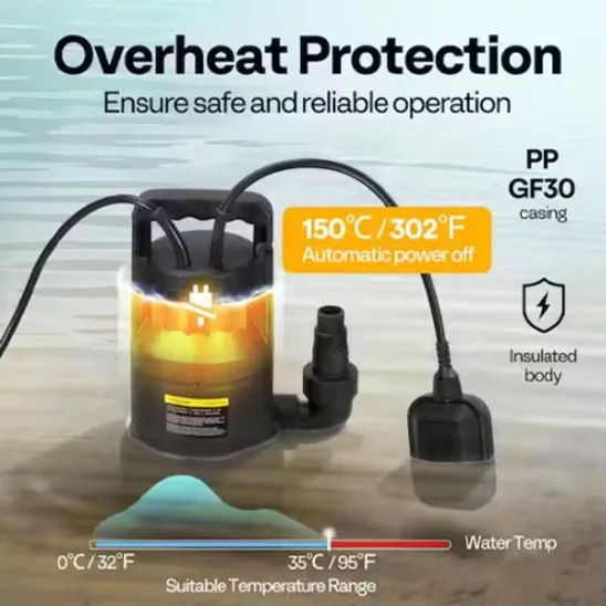 Submersible sump pumps are designed with advanced safety and efficiency features that ensure optimal performance and durability across various circumstances, especially those that are exposed to flood conditions or high-moisture levels. Overheat protection is a critical feature that avoids motor damage through the self-switching off of the pump when it gets too hot. This feature allows the pump to self-cool before resuming work, thereby extending its lifespan and preventing costly repairs or replacements. Automatic shut-off devices also enhance energy efficiency and safe operation by detecting low water levels and automatically turning off the pump. This prevents dry running, which can cause overheating, excessive wear, and potential damage to internal components. Anti-clogging and debris management capabilities, such as integrated filters, vortex impellers, and pump housings specifically designed to prevent blockage by dirt, sludge, and debris, also help to prevent clogging. Through prevention of blockage and uninterrupted water flow, these design aspects contribute to hassle-free operation and reduced maintenance. As a combination, these protective systems make submersible sump pumps very reliable to deal with water accumulation in basements, construction grounds, and manufacturing processes.