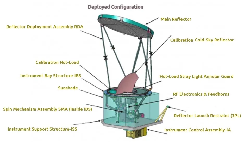 Ball Aerospace and Technology Corporation was chosen by NASA in March 2005 to provide the GMI instrument. The Global Precipitation Measurement (GPM) Microwave Imager (GMI) is a crucial component of GPM and is characterised by a microwave radiometer, multichannel conical- scanning, providing near-global coverage, and frequent revisit time (Bidwell et al., 2005). Thirteen microwave channels in the GMI cover a frequency range of 10 GHz to 183 GHz. Four high frequency channels near 166 GHz and 183 GHz are carried by the GMI, alongside channels similar to those on the Tropical Rainfall Measuring Mission (TRMM) Microwave Imager (TMI). The spatial resolution of the GMI is greatly improved with a 1.2 m diameter antenna compared to the TMI (NASA). Components of GMI are shown in Figure 8.