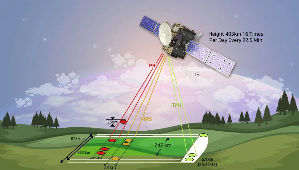 However, instruments on satellites seldom directly measure the required physical quantity, such as the surface rain rate in the case of TRMM, necessitating the use of retrieval algorithms. In this regard, numerous assumptions lead to discrepancies between estimates and reality. Validation of estimates and the development of retrieval algorithms are being continually conducted (Nakamura, 2021). This article will explain the types of Tropical Rainfall Measuring Mission (TRMM) sensors, including PR, TMI, VIRS, LIS, and the CERES instrument, along with their characteristics.