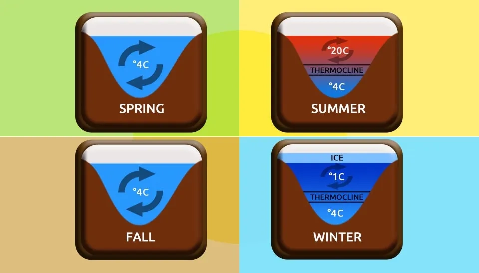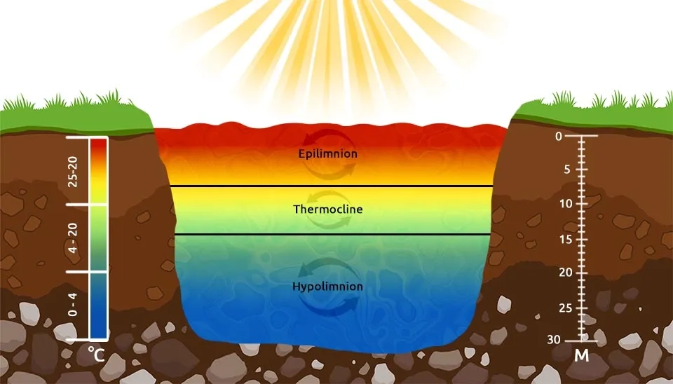 Even though water is the most solvent liquid and we think that its physical and chemical properties are the same everywhere, water cannot be homogeneous under certain conditions! What do you think? It may not be believable at first glance, but thermal stratification is a process that stratifies and makes water heterogeneous. The concept of thermal stratification in lakes began in the 1960s with analytical and laboratory studies. At that time, theories were presented for the time dependence between solar radiation and vertical temperature distribution (Dake and Harleman, 1969). After years, we see new horizons of thermal stratification, especially in lakes.