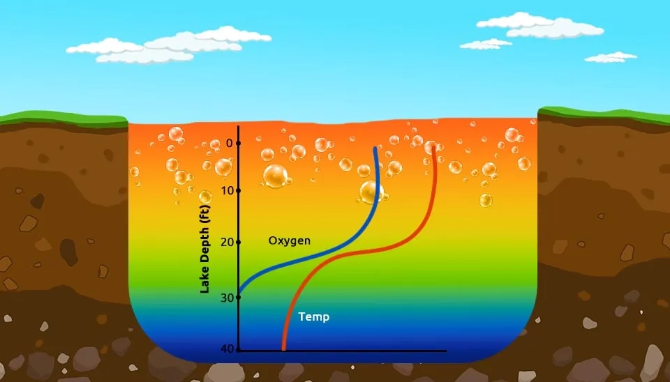 Thermal stratification and periods of anoxia can have significant consequences for fish habitat, nutrient dynamics, and greenhouse emissions. Previous studies show that in thermal stratification (with a lag of several days), dissolved oxygen is maximized at the surface, and the lake faces anoxia conditions at depths of more than 2 to 3 meters. Therefore, during the anoxia period, fishes and aquatic animals generally gather at depths of 2 to 3 meters. On the other hand, the concentration of phosphate, ammonia, and greenhouse gases increases at depths of more than 2 meters (Søndergaard et al., 2022). Continuation of hypolimnetic anoxia and the reduction of dissolved oxygen below 1 to 2 mg/liter in higher layers will cause the death of fish (Abdel-Tawwab et al., 2019).