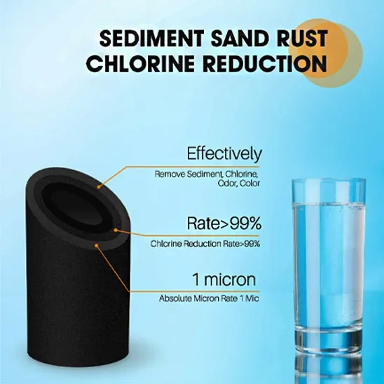 This carbon water filter cartridge is standard for home water purification. These filters offer versatility and are suitable for different applications from under sink water filters to whole house systems. This product effectively removes chlorine, cloudiness, bad taste, odors, chemicals, and microscopic particles to provide clean and healthy drinking water. It is designed to integrate with all standard 10-inch water filters. Depending on the water quality, this water filter cartridge works for up to 6 months. It can be easily installed and offers reliability and durability.