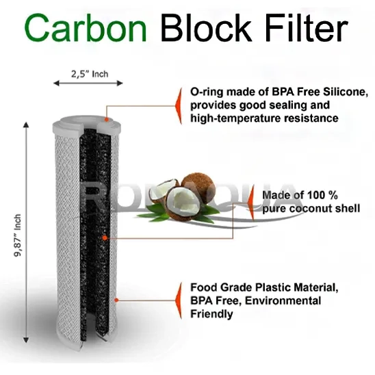 Product name | Ronaqua Block Activated Carbon Coconut Shell Water Filter Cartridge 5 Micron for RO & Standard Housing |