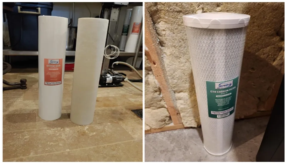One user expressed that the chlorine smell was removed after installing the carbon filter, and the home water taste improved.