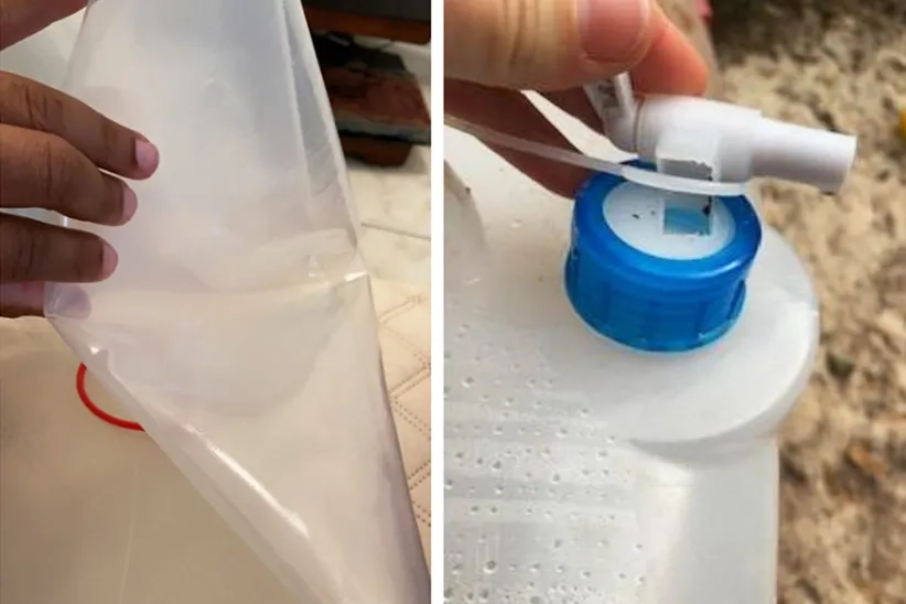 Despite being durable, users reported that water stored in the bags tasted like plastic and that plastic particles collected in the water after freezing, leading to frustration and a bad taste experience.