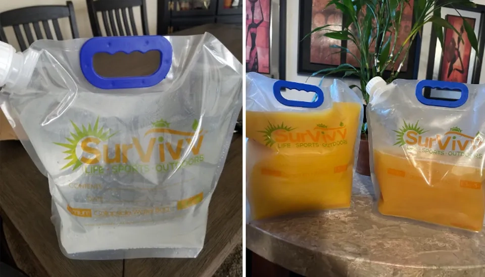 The SurVivv Collapsible Water Storage Container is freezable. It is environmentally friendly and non-toxic. Advantages of this product include leak-proof, odorless, flat-folding, clear plastic storage bottle, lightweight, soft, flexible, odorless and tasteless, durable, and reusable plastic. The SurVivv Premium Collapsible Water Container Bag has a collapsible and compact design and occupies little space. Another advantage of this product is a 1-year warranty with a 90-day refund, 1-year replacement in case of product dissatisfaction, customer service, and support, which adds to the product's reliability.