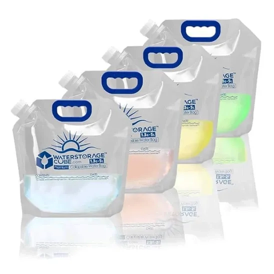 WaterStorageCube Premium Collapsible Water Container Bag is made of BPA-free and non-toxic food-grade transparent PET (Polyethylene Terephthalate), PA (Polyamide), and PE (Polyethylene) plastic that is environmentally friendly. The advantages of this product include being transparent, soft, flexible, odorless, tasteless, durable, and reusable, which makes it a unique product. WaterStorageCube Premium Collapsible Water Container Bag is made in 1.3 and 2.6 gallon sizes and due to its compact and light design, this product is portable and takes up little space.