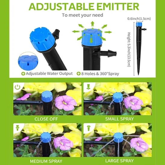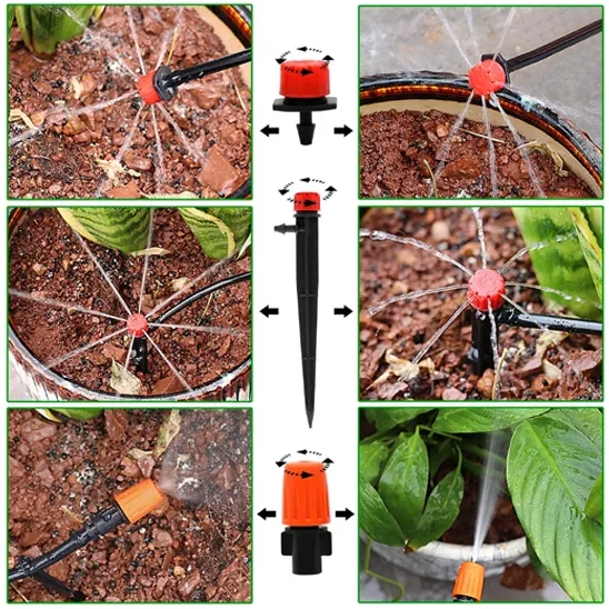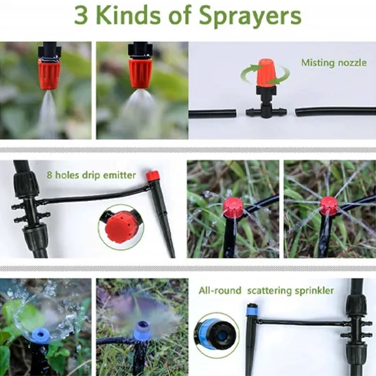 The MIXC drip irrigation kit comes with 3 types of sprayer, and the drip emitter can adjust different irrigation modes such as microdroplets, sprays, and normal watering. Compared to traditional irrigation systems, the improved design of this system can save up to 70% of water consumption. This drip watering kit ensures durability and long life, making it suitable for a variety of applications such as atomization, lawn irrigation, patios, roof cooling, agriculture, greenhouses, flower beds, swimming pools, misting, etc.