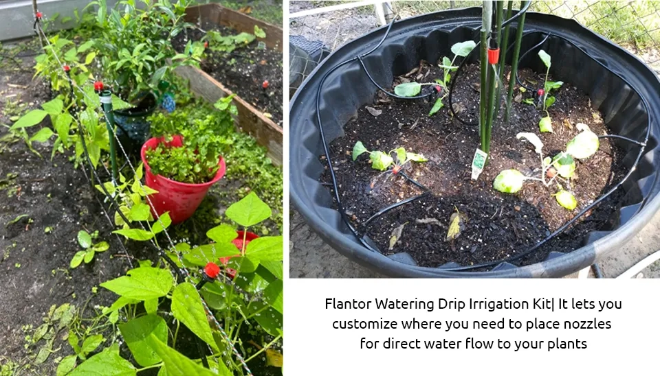 The Flantor drip irrigation kit lets you customize where you need to place nozzles for direct water flow to your plants and keeps your plants hydrated and healthy.