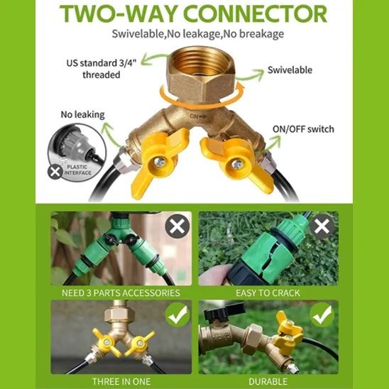The product is compatible with small and simple irrigation needs. It is possible to set up the system in different ways since there is a split connector and a single connection in the package for more convenience.