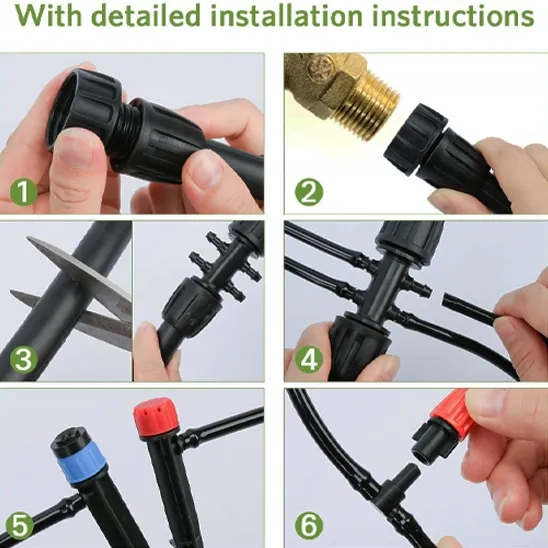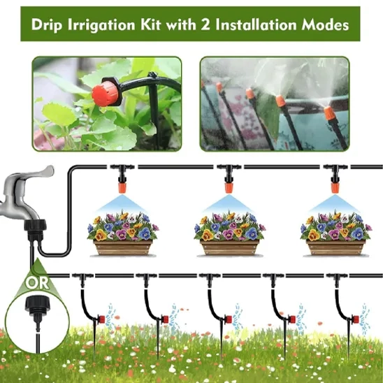 The PETUOL drip irrigation kit is a comprehensive solution for watering garden plants, designed to simplify the process of watering the garden while effectively saving water resources. This drip watering system includes everything needed to ensure efficient watering of garden plants and makes watering the garden an easy task. With a total length of 100 ft, this product can irrigate green plants of about 40 square meters. Installation of the PETUOL Drip Irrigation Kit is simple and quick, requiring no digging or piping technology. Just plug in fittings and drippers with tubing to complete a set and start irrigating your plants. It comes with two types of faucet fittings, threaded and universal.
