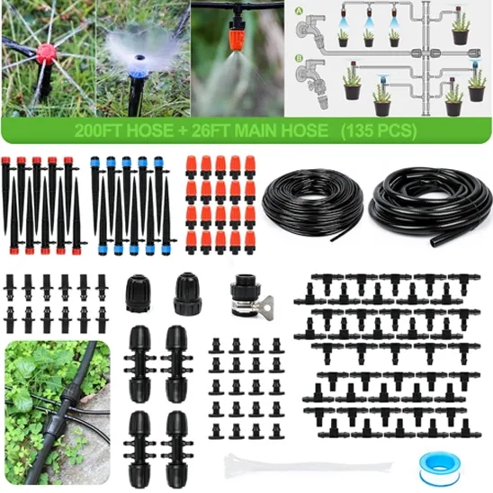Product Name | MIXC 226FT Greenhouse Micro Drip Irrigation Kit Automatic Irrigation System Patio Misting Plant Watering System with 1/4 inch 1/2 inch Irrigation Tubing Hose Adjustable Nozzle Emitters Barbed Fittings |