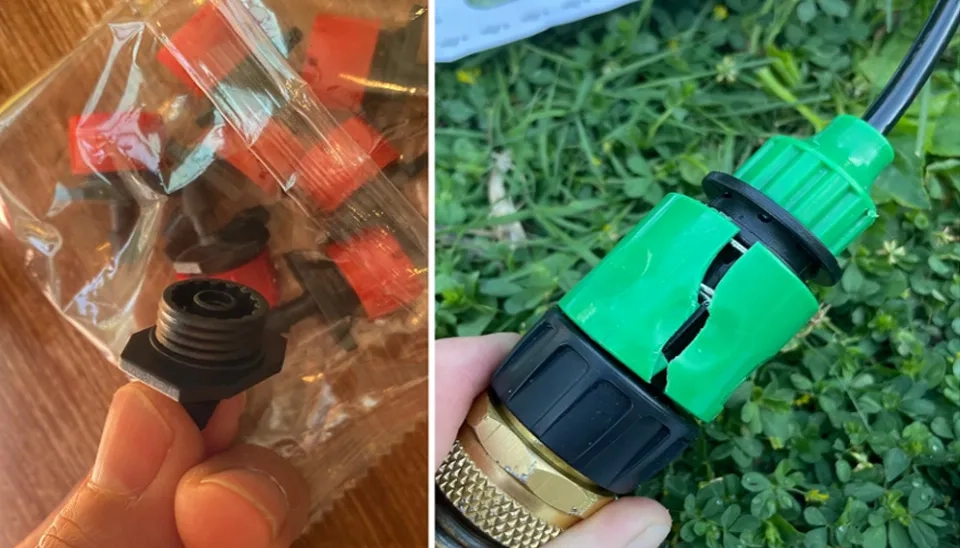 The connector fell apart into pieces right out of the box, leading to concerns about this plant watering system’s reliability.