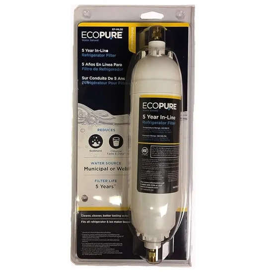 EcoPure EPINL30 in-line refrigerator filter is a reliable solution to ensure clean and fresh drinking water directly from the refrigerator. It is designed for most major refrigerator brands including Samsung, LG, Whirlpool, Kenmore, Frigidaire, and GE. This durable filter provides up to 5 years of continuous filtration, and can be also used for ice maker, RV or sink. The EcoPure EPINL30 inline water filter is easy to install, as it is equipped with 1/4-inch compression fittings and a push-to-fit fitting for plastic or copper water lines. This flexibility ensures compatibility with a wide range of water supply configurations.